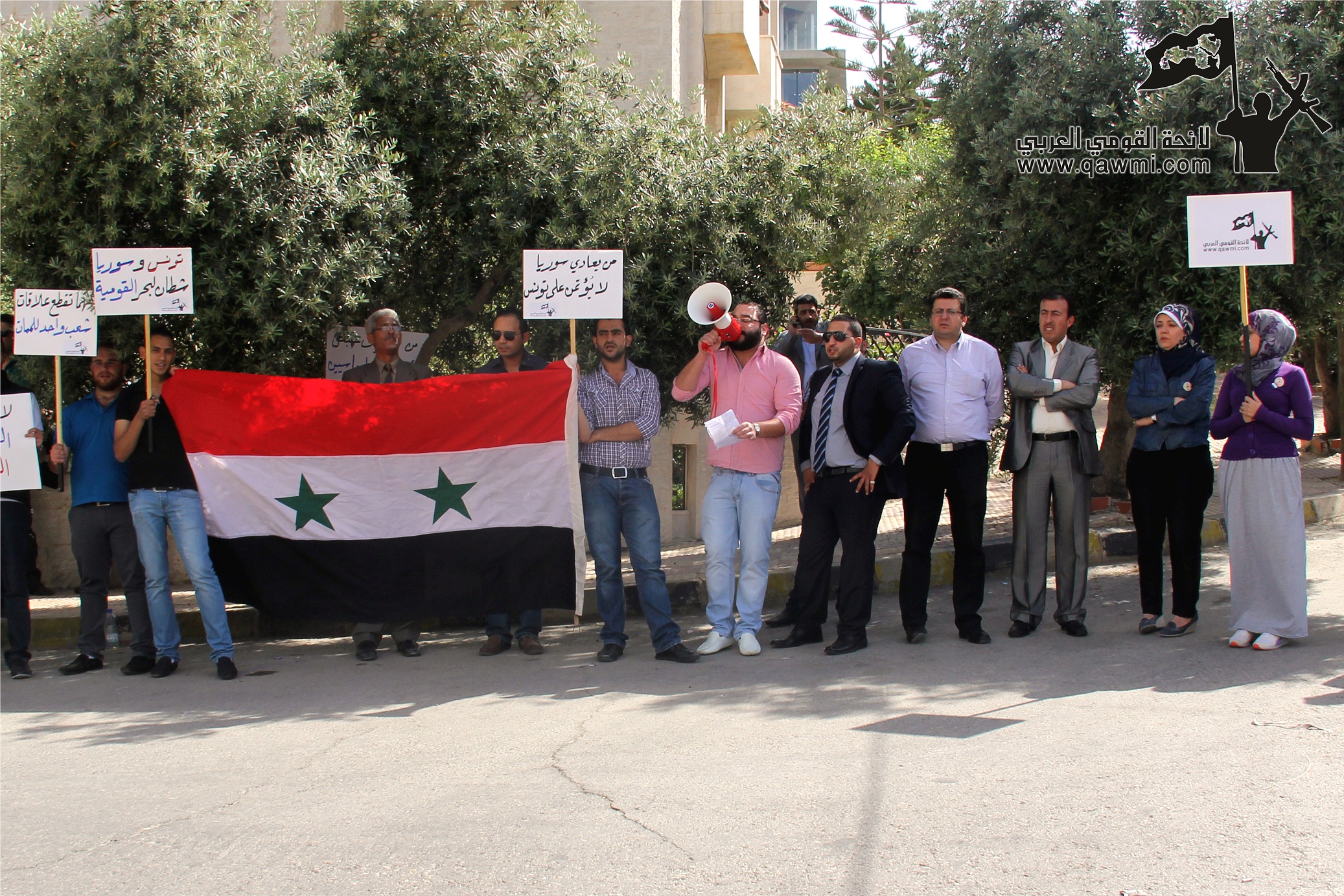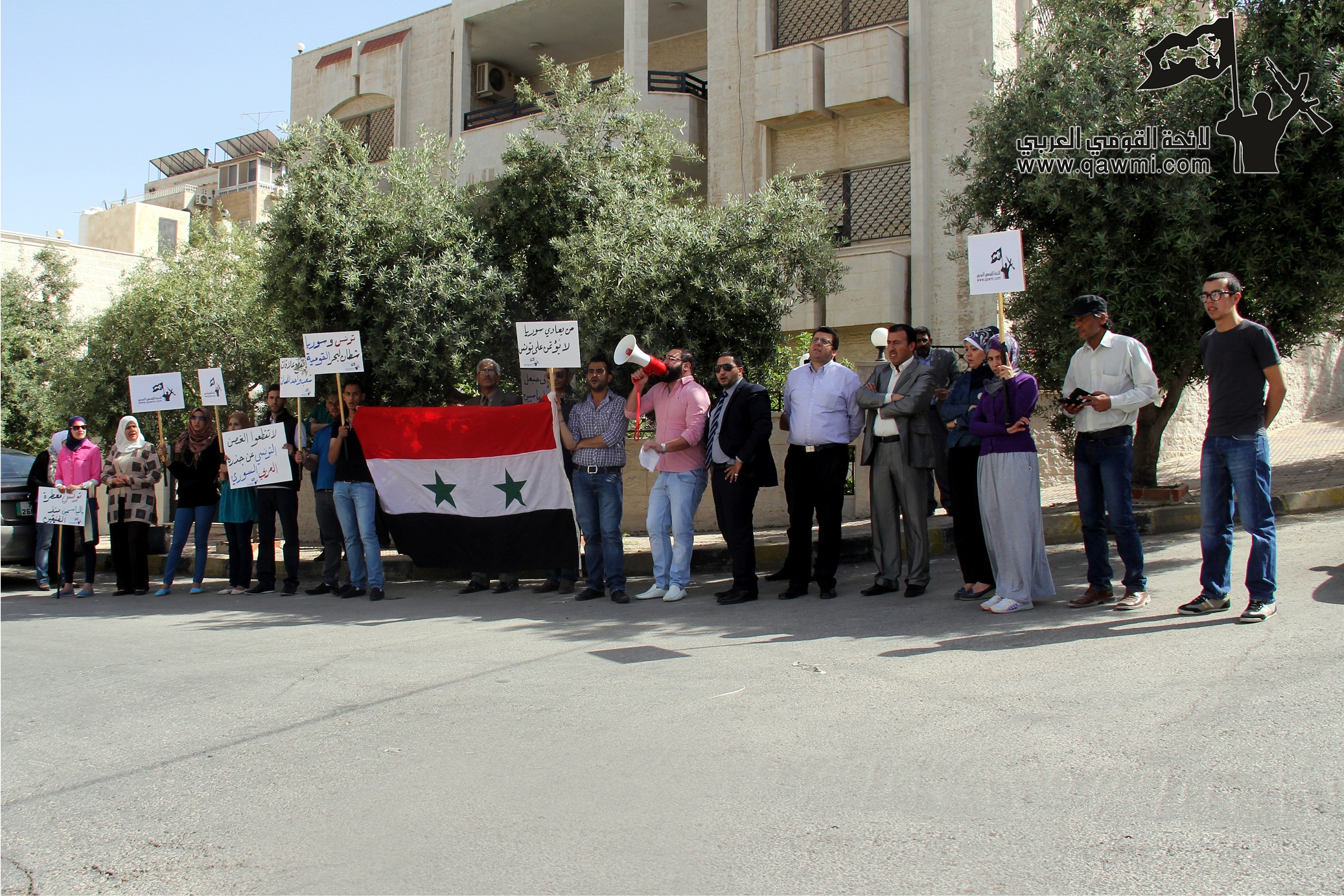 الأردن تنفذ اعتصاماً لاستئناف العلاقات الدبلوماسية بين تونس وسورية أمام السفارة التونسية في عمان في نفس الوقت الذي تعتصم فيه لائحة القومي العربي/ تونس أمام وزارة الخارجية التونسية…