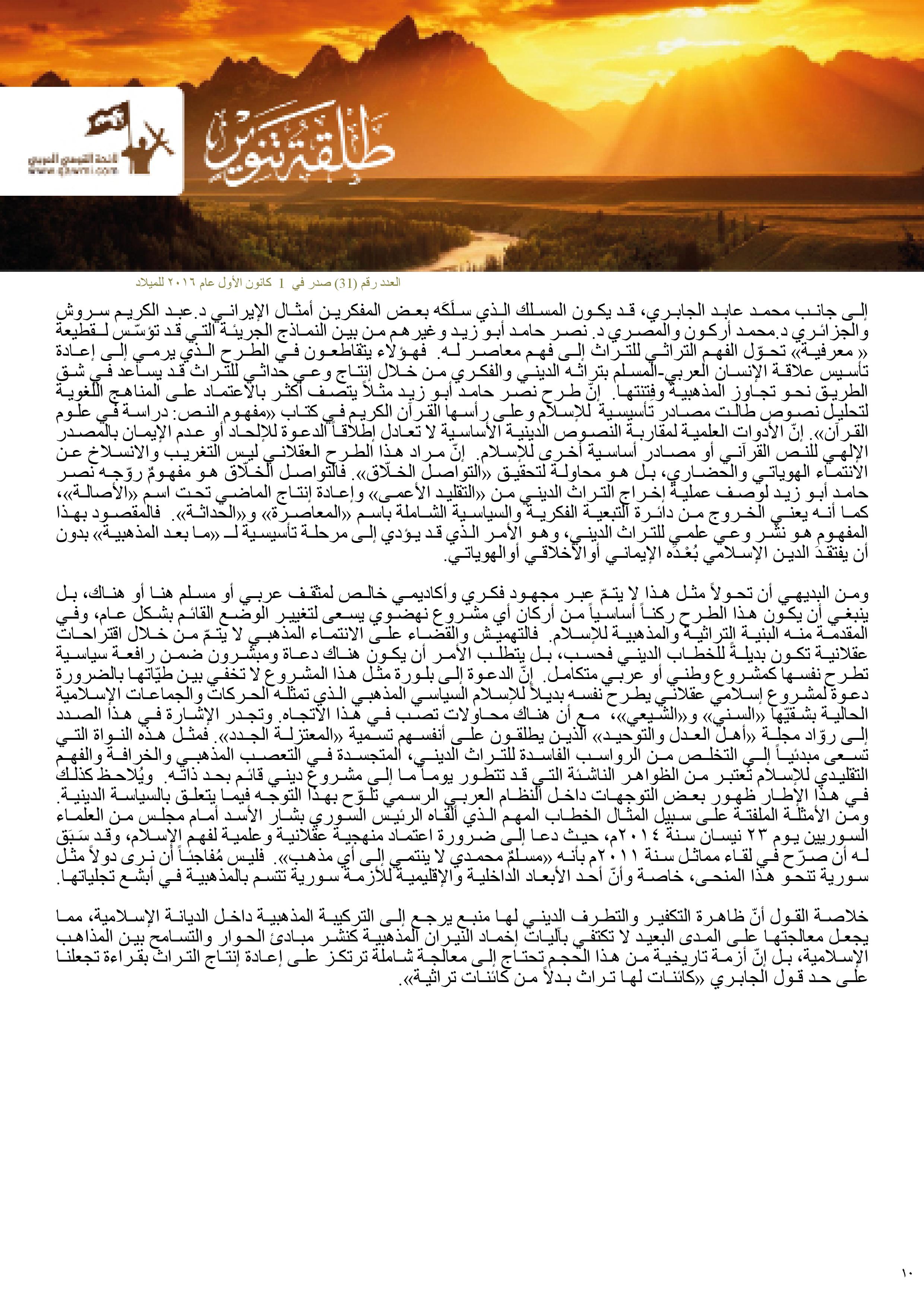 عقلنة التراث الإسلامي والتأسيس للمرحلة ما بعد المذهبية