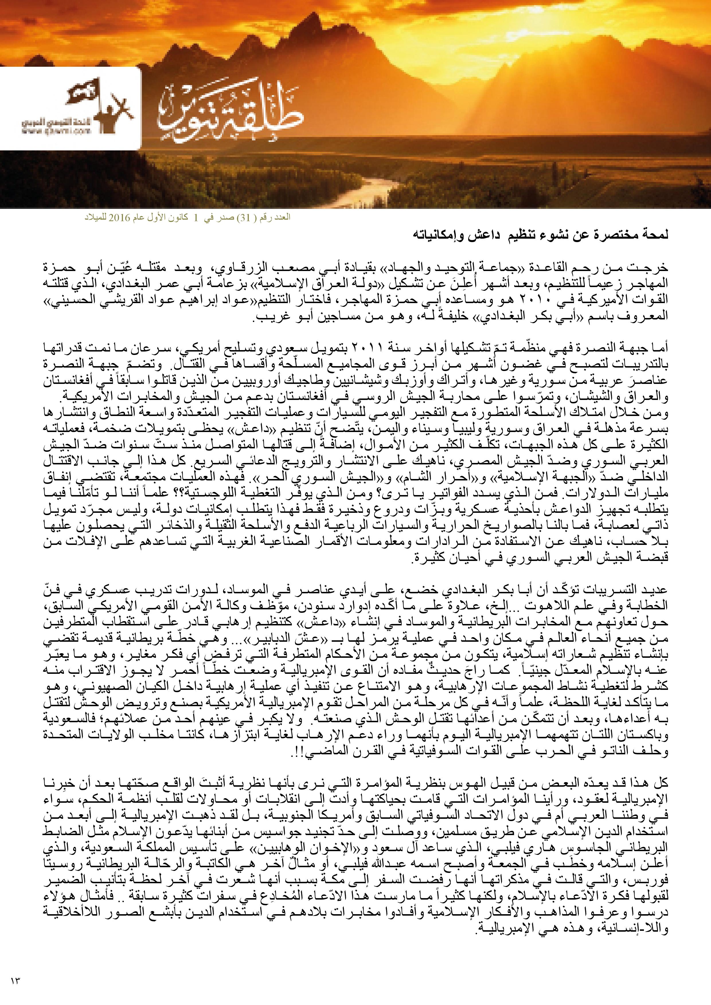 المجلة الثقافية للائحة القومي العربي… عدد 1 كانون أول 2016