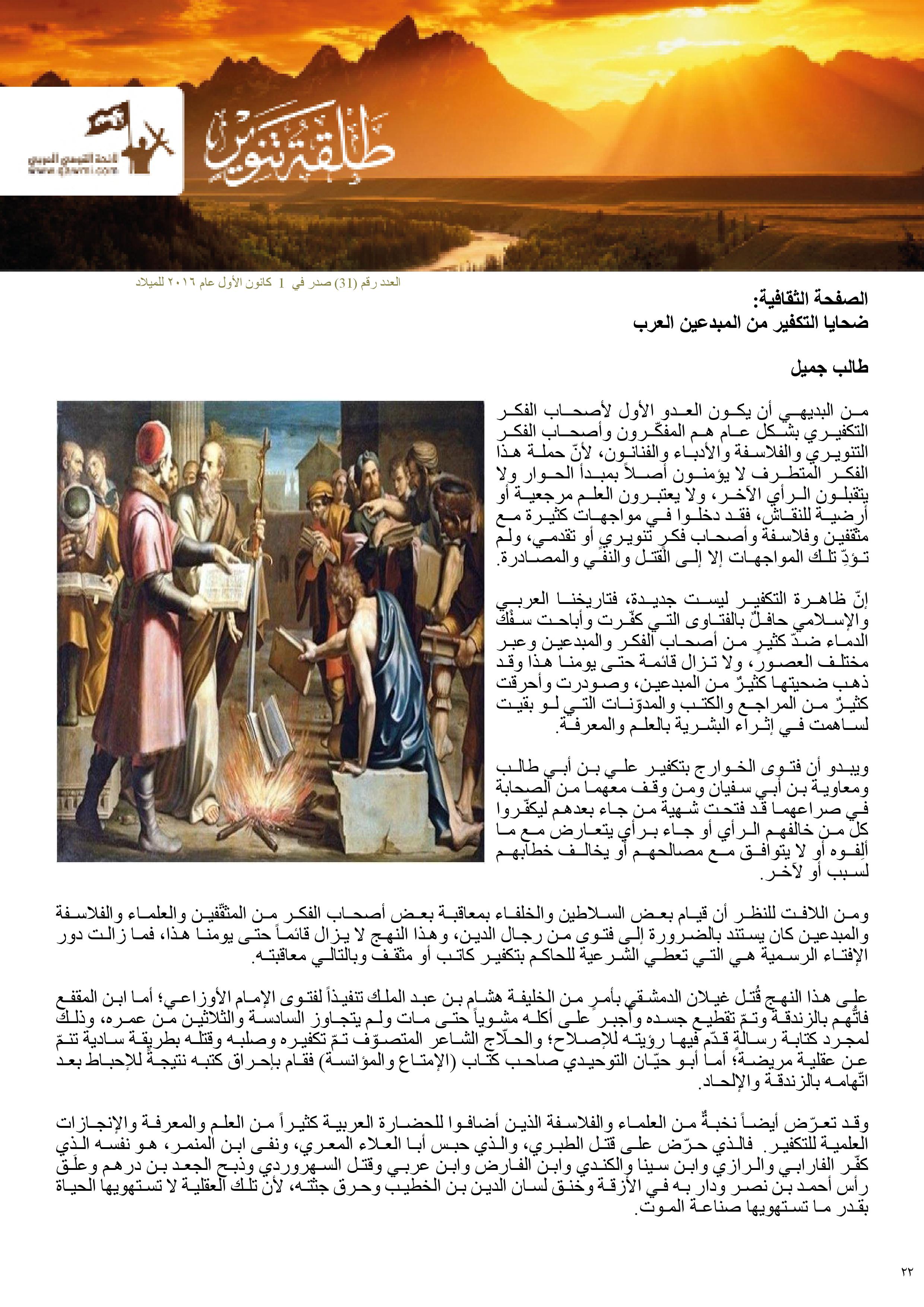 -الصفحة الثقافية: ضحايا التكفير من المبدعين العرب/ طالب جميل