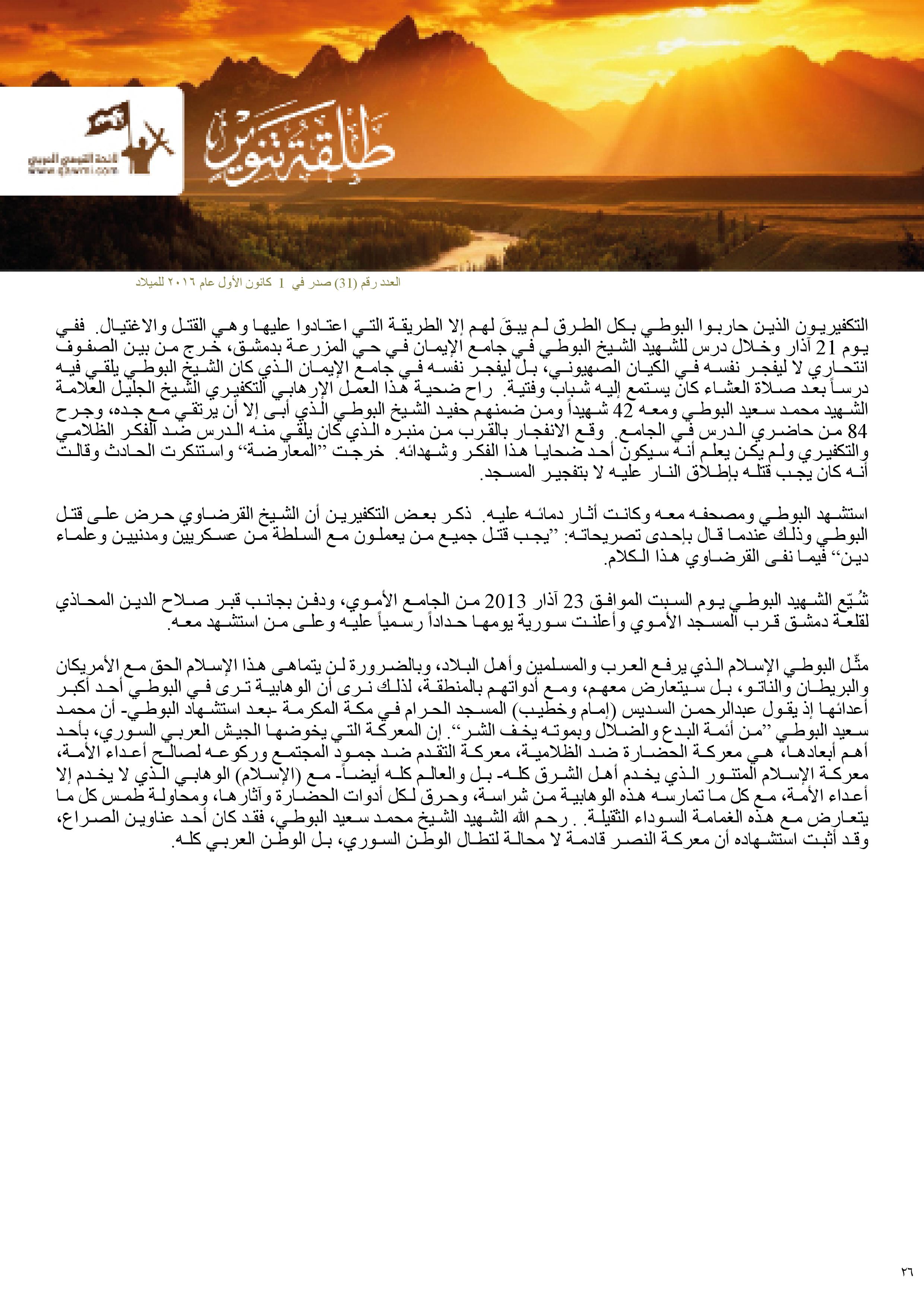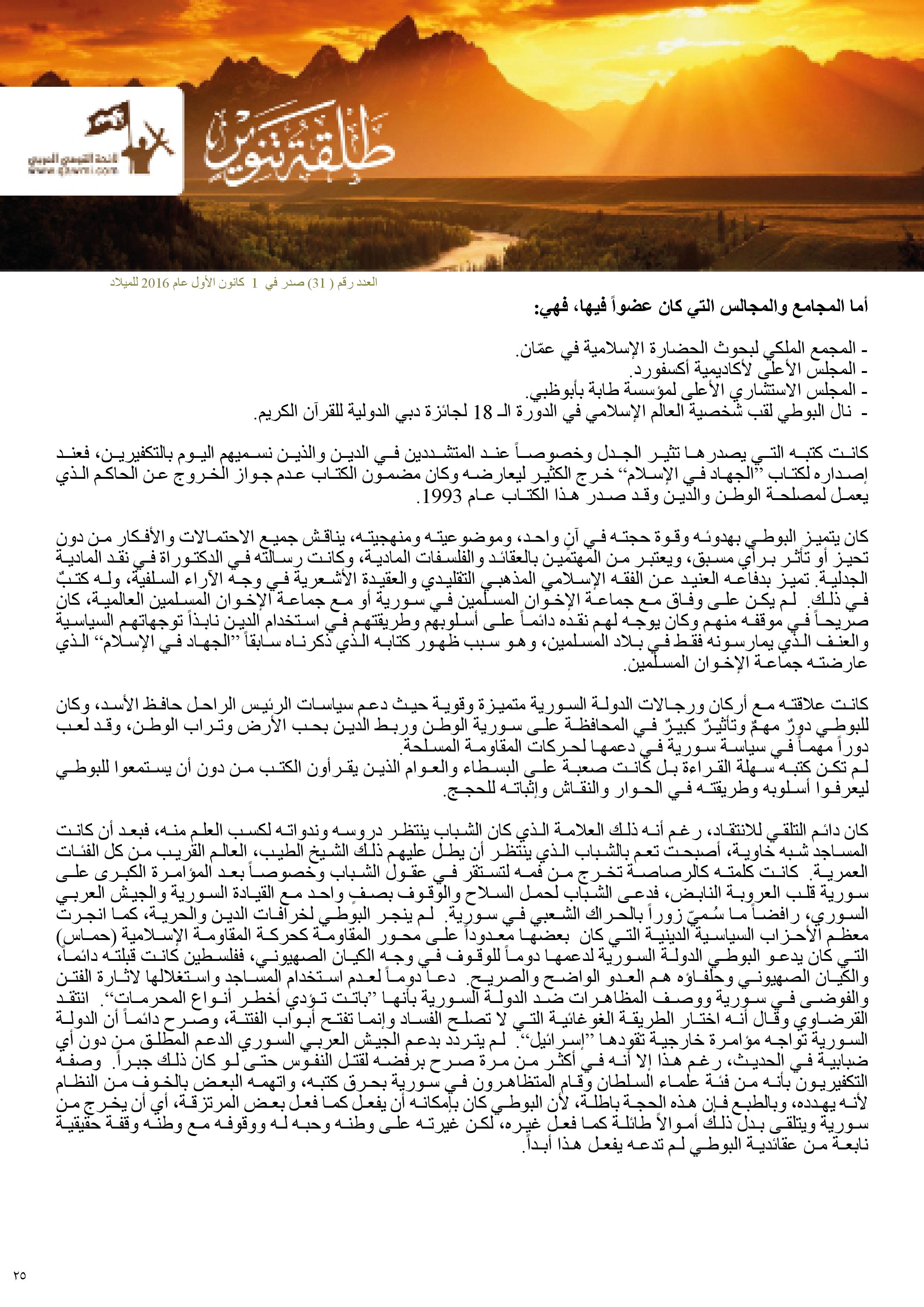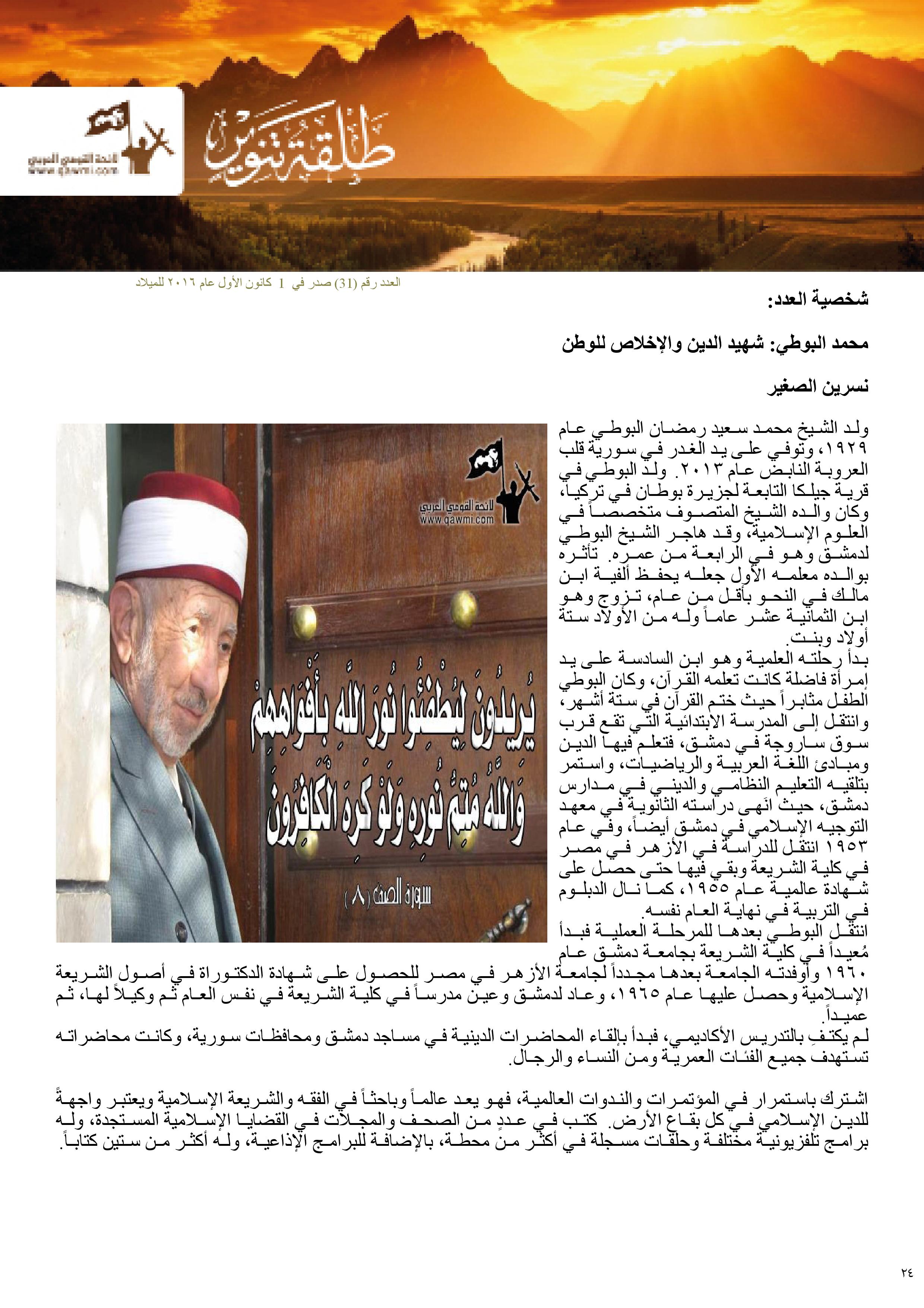 – شخصية العدد: محمد البوطي.. شهيد الدين والإخلاص للوطن/ نسرين الصغير