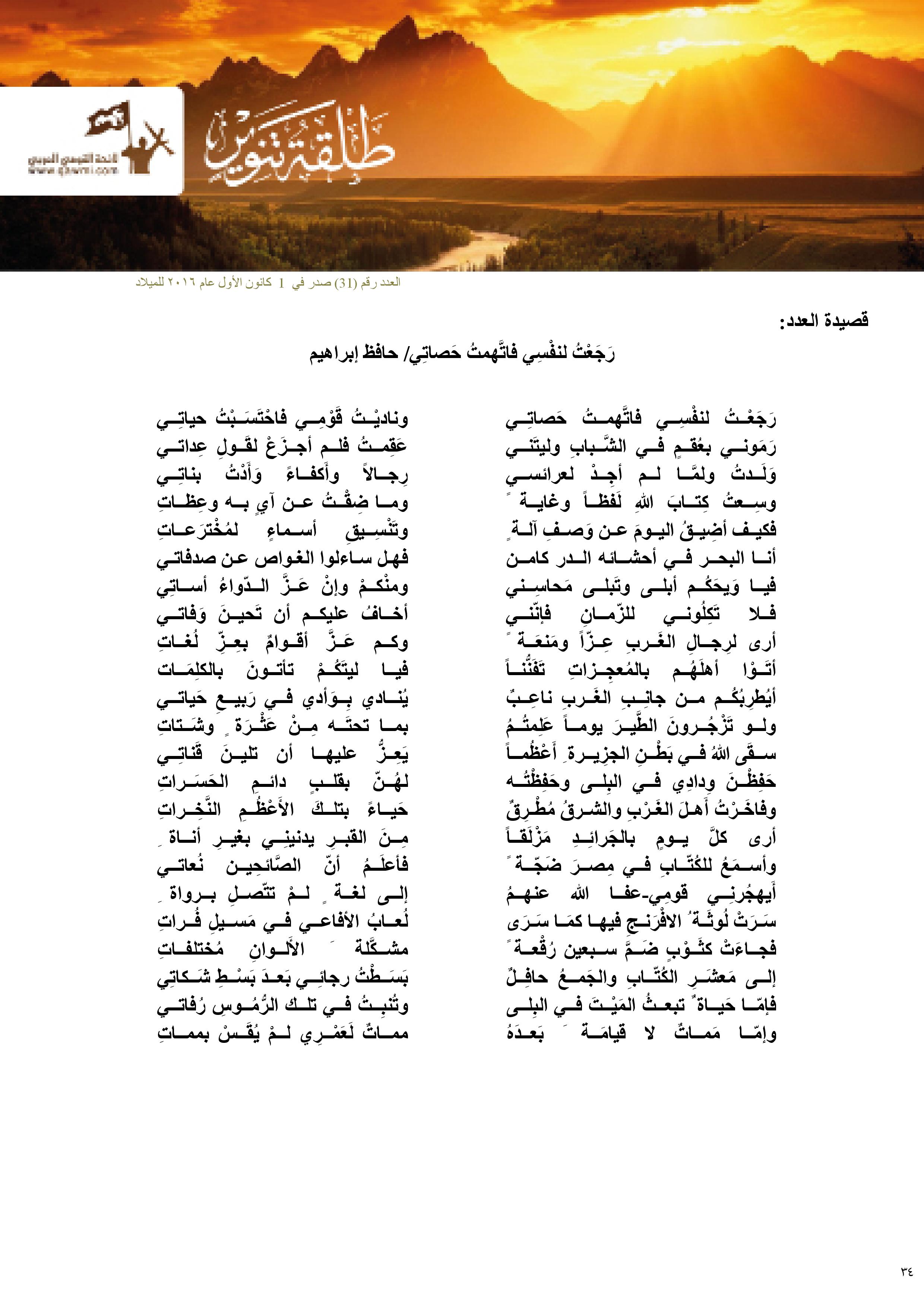 – قصيدة العدد: رَجَعْتُ لنفْسِي فاتَّهمتُ حَصاتِي/ حافظ إبراهيم