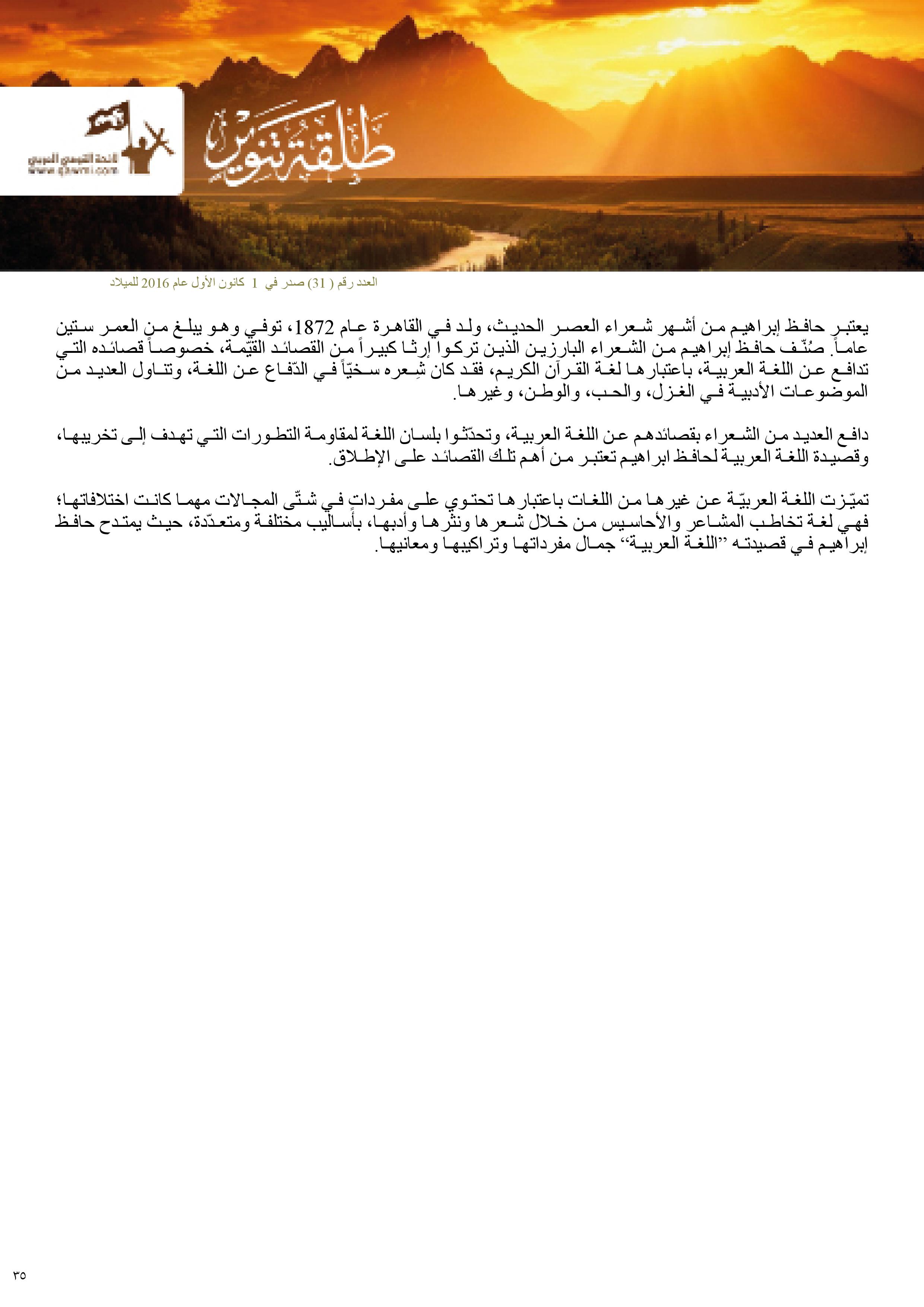 تميّزت اللغة العربيّة عن غيرها من اللغات باعتبارها تحتوي على مفرداتٍ في شتّى المجالات مهما كانت اختلافاتها؛ فهي لغة تخاطب المشاعر والأحاسيس من خلال شعرها ونثرها وأدبها، بأساليب مختلفة ومتعدّدة، حيث يمتدح حافظ إبراهيم في قصيدته “اللغة العربية” جمال مفرداتها وتراكيبها ومعانيها.