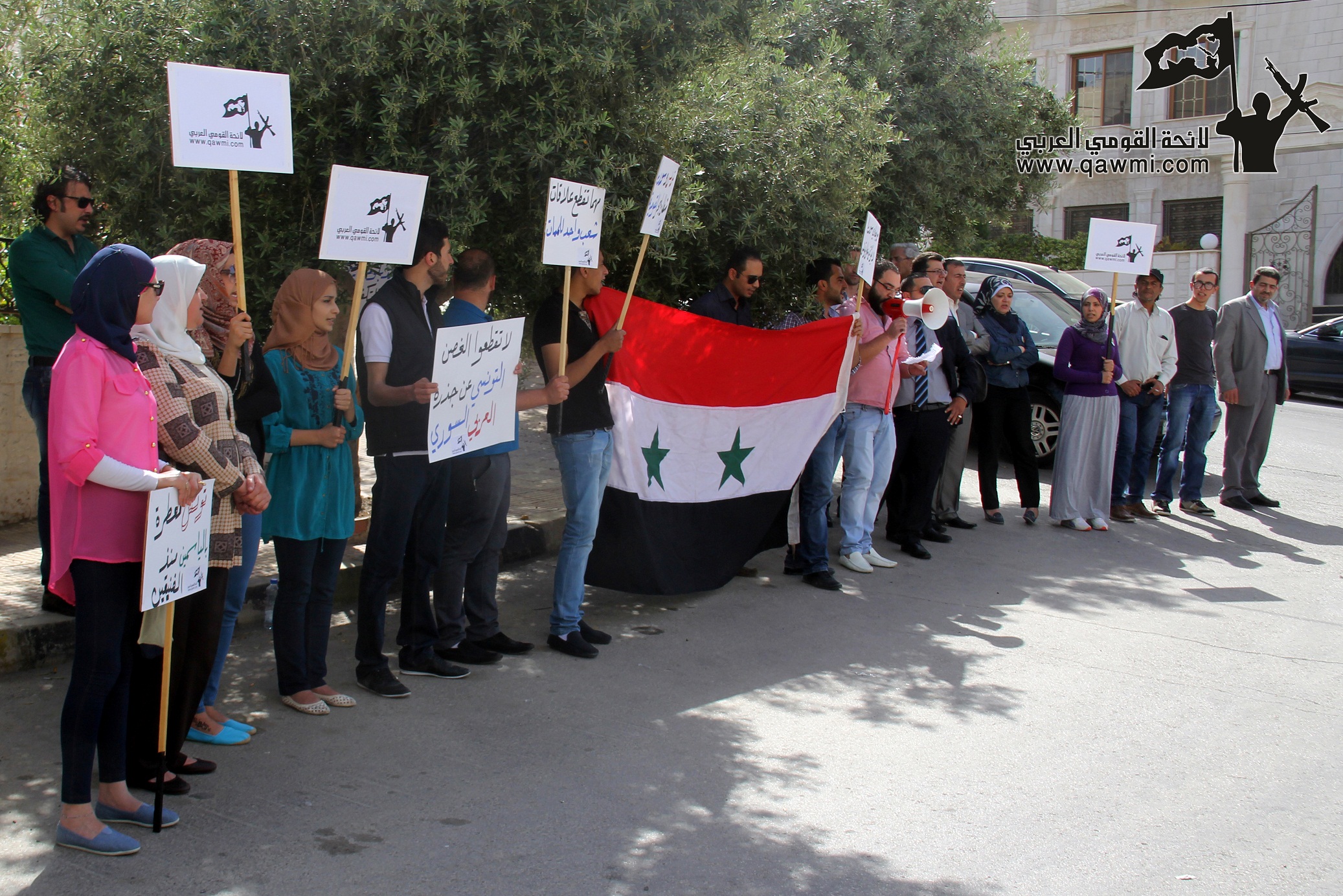 خاص / لائحة القومي العربي الأردن تنفذ اعتصاماً لاستئناف العلاقات الدبلوماسية بين تونس وسورية أمام السفارة التونسية في عمان في